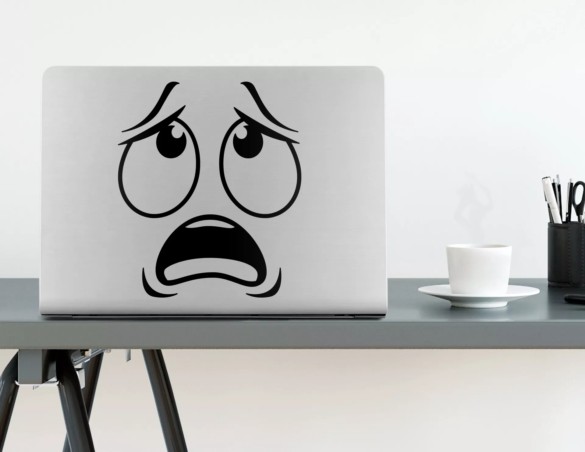 Echte Emotion: Das Wandtattoo Cartoon Worried Face ...lässt Objekte gleich wie lebendig erscheinen. Ob Laptop, Kühlschrank oder Wand – für diesen lustig, leidenden Smiley-Aufkleber findest Du bestimmt ein passendes Plätzchen.