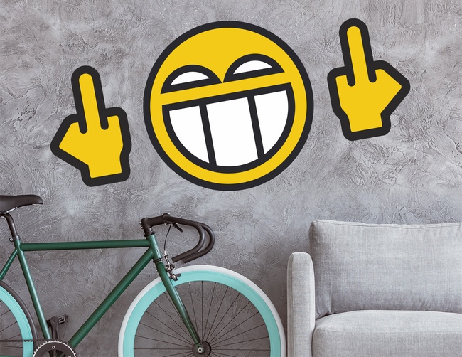 Emoticons sind die Stars der Kommunikation: Die bunten japanischen Symbole reichen aus, um sich klar und ohne Worte zu verständigen. Aber nicht für alle Emotionen gibt es den richtigen Smiley. Deshalb präsentieren wir hier einen speziellen Motiv-Aufkleber – den "F**k Off Smiley". Er zeigt mit seinen Mittelfingern unmissverständlich, was Sache ist und ist damit perfekt für Fenster, Türen oder Möbel geeignet – Wandtattoo "FO Smiley"!