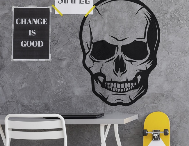Das Wandtattoo „Schädel Schauer“ sorgt für eine gruselige Atmosphäre im Zimmer. Für alle, die es düster mögen.