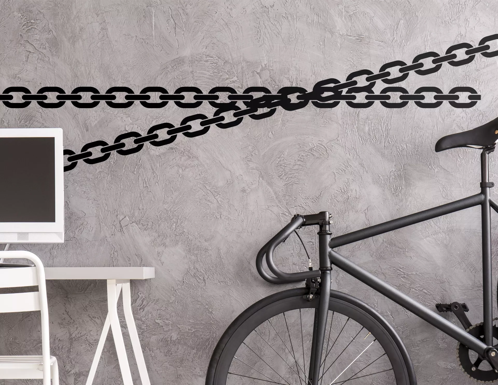 Setze ein kraftvolles Statement in Deinem Zuhause mit unserem Wandtattoo Iron Chain-Set. Dieses Design besteht aus zwei langen Streifen, die an eine massive Stahlkette erinnern und jedem Raum einen robusten und markanten Look verleihen.