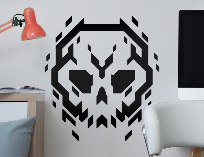 Alles andere als gestorben: Wandtattoo "Techno Skull" der Totenkopf in Digital-Pixel-Optik.