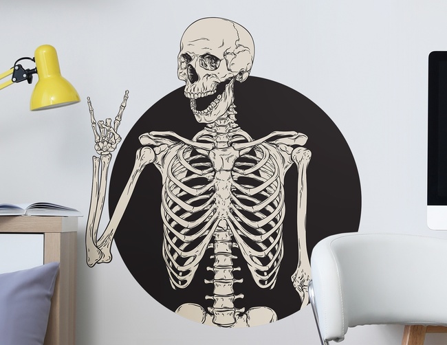 Die Liebe zum Heavy Metal geht über den Tod hinaus, sagen echte Headbanger. Nun, dieser klapprige Geselle könnte dem wohl am besten zustimmen. Denn Käpt'n Gerippe hält die Pommesgabel hoch gereckt und ist bereit, das nicht vorhandene Haupthaar zu Double Bass Drum und schneidenden Gitarrenriffs zu schütteln. Als Wandtattoo wird unser Skeleton deshalb nicht nur in der Studi-WG oder dem Jugendzimmer, sondern auch im amtlichen Proberaum für morbide Atmo sorgen: Rock'n'Roll will never die!