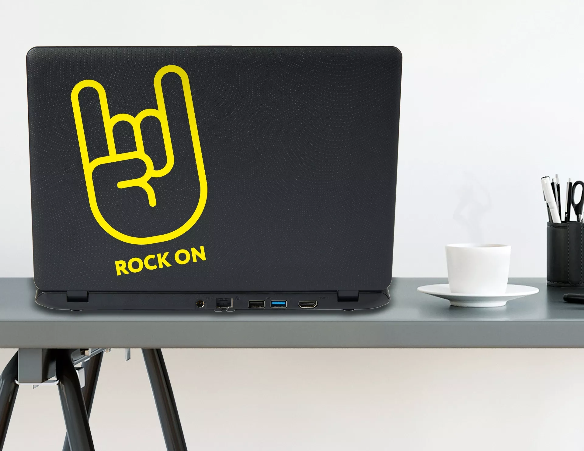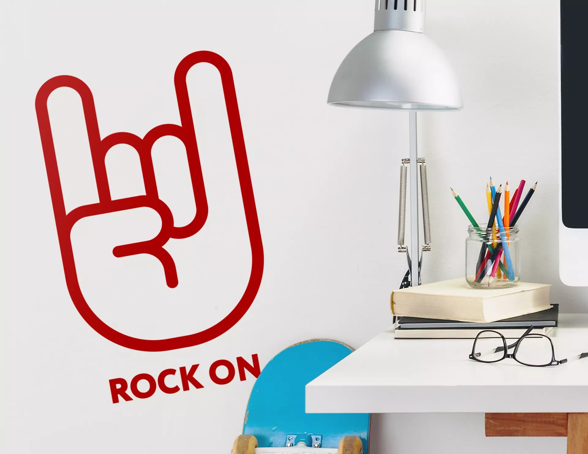Auf geht's, los geht's, rock on! Wer regelmäßig Konzerte oder Festivals besucht, kennt die Geste von tausenden Rockern und Metal Heads, die ihre Hände in die Luft strecken und synchron im Takt bewegen. Die 'gehörnte' Hand ist dabei Motivation und Zugehörigkeitssymbol in einem. Das Wandtattoo "Rock On" mit der ikonischen Rockerhand transportiert diese rockige Stimmung jetzt direkt zu Dir nach Hause: einfach aufkleben und abrocken!