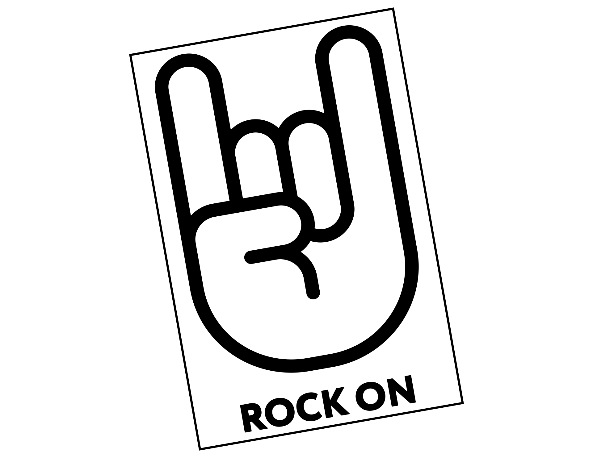 Egal was kommt: Rock on! Die 'gehörnte' Hand als Icon mit Schriftzug macht Laune und sieht einfach super cool aus.