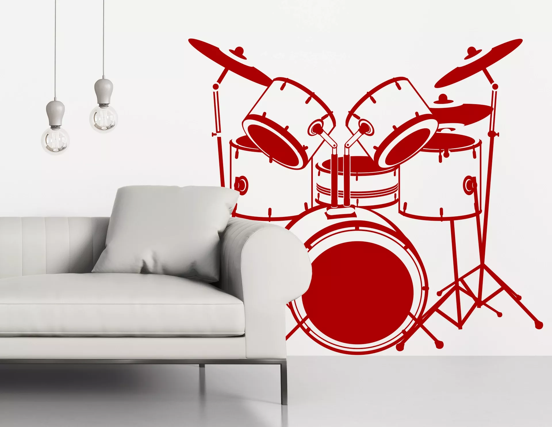 Löst Begeisterungsstürme aus: Das Wandtattoo Schlagzeug. Cool, laut, kraftvoll und nicht wegzudenken aus der modernen Musikgeschichte.