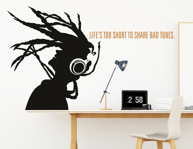 Wandtattoo mit Spruch: "Life's too short to share bad tunes." Schmeiß das Radio an die Wand. Hör was Dir gefällt. Klebe was Spaß bringt! „Stay Tuned“ ist ein energiegeladenes Design nicht nur für Musikfans, sondern für alle, die das Leben leidenschaftlich und in vollen Zügen leben! Mit einem Wandtattoo von Klebefisch.de holst Du Dir nicht nur gutes Design, sondern Aufkleber in herausragender Qualität an Deine Wände!