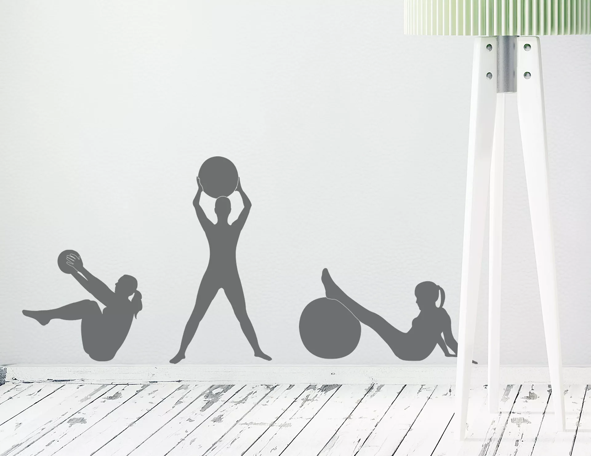 Das Wandtattoo Set „Gymnastik #4“ zeigt drei effektive Fitness Übungen mit dem Gymnastikball. Sportliche Wanddeko für Zuhause oder im Fitnessstudio.