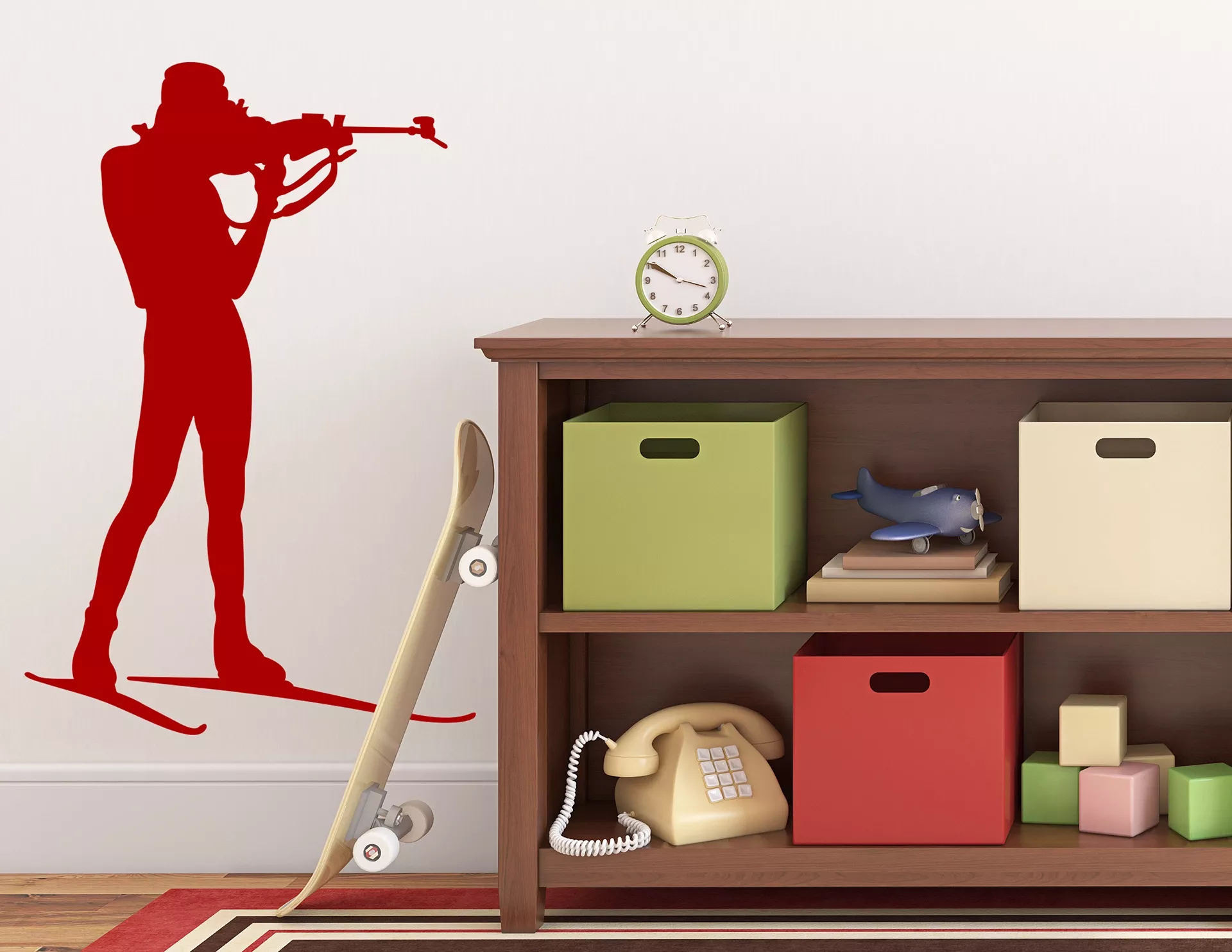 Das Wandtattoo „Biathlet #2“ vereint zwei starke Disziplinen des Wintersports miteinander und bringt den kraftvollen Sport auf Deine Wand!