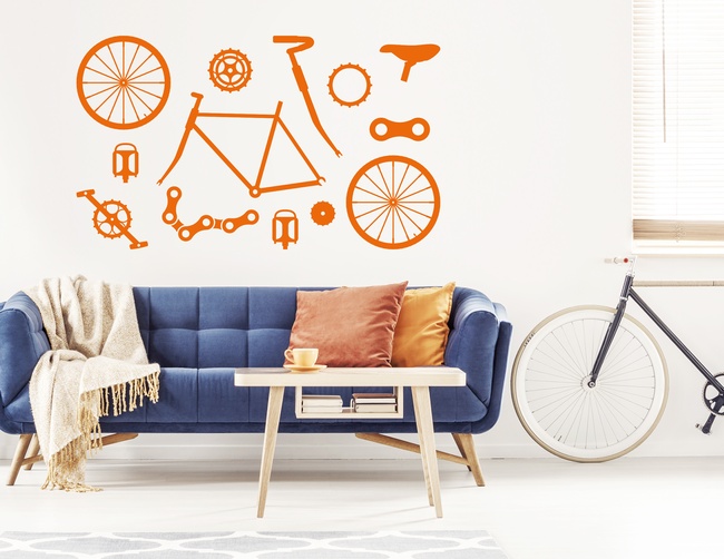 Ein platter Reifen, eine Acht in der Felge, eine kaputte Bremse oder die Schaltung springt – alles kein Problem für echte Fahrradschrauber. Du baust gerne Dinge auseinander und auch wieder zusammen? Du kennst Dich mit der Materie Fahrrad aus und weißt wohin welches Teil gehört? Dann ist dieses Design für Dich! Nach der kalten Jahreszeit lockt uns Sonnenschein und Vogelgezwitscher ins Freie. Da ist es auch nicht verwunderlich, dass wir Lust auf eine Fahrradtour verspüren. Schnell in den Keller und den Drahtesel generalüberholt… los geht's. Wir haben hierzu mal einen ganzen Fahrrad-Bausatz als Wandtattoo gestaltet – für mehr Schrauber-Feeling in Deinem Zuhause.