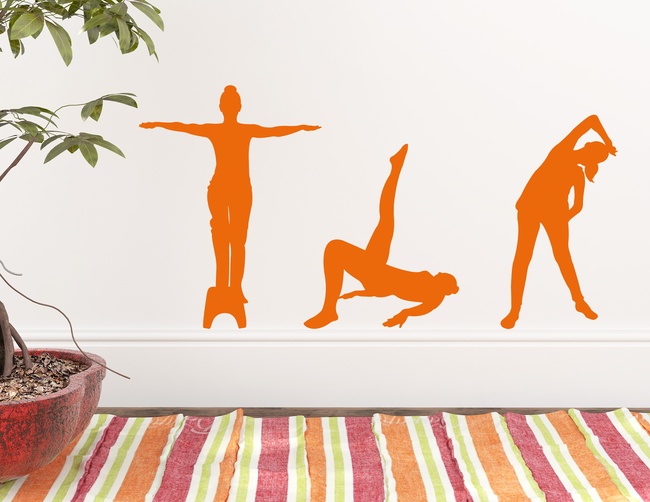 Vorbei sind die Zeiten, wo Bauche-Beine-Po nur im Fitnessstudio trainiert wurden. Effektiver und zeitsparender ist das Training zuhause allemal. Mit dem Wandtattoo Set „Gymnastik #3“ schaffst Du auch in Deinen vier Wänden die optimale Umgebung für Deinen Sport. Matte ausrollen, Lieblingsmusik an und los geht’s! Das sportliche Wanddesign besteht aus drei Silhouetten, die auf jeder glatten Fläche angebracht werden können. Ab jetzt gibt’s keine Ausreden mehr!