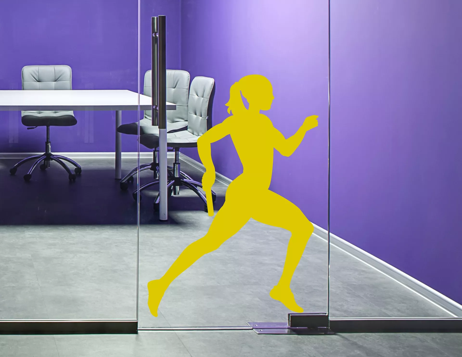 Das Wandtattoo „Staffellauf“ zeigt eine trainierte Staffelläuferin unmittelbar beim Sprint.