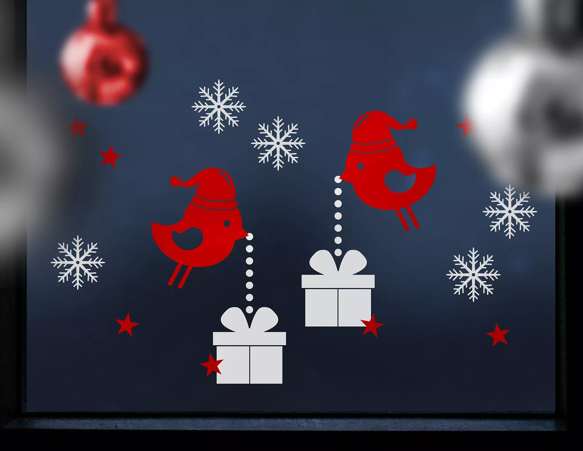 Süße Luftpost! Dieses Jahr überbringen zwei freche Spatzen die Geschenke. Das verspielte Wandtattoo „Merry Air Mail“ sorgt für gut gelaunte Weihnachten.